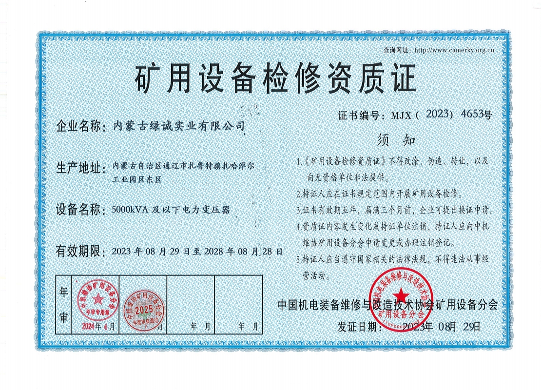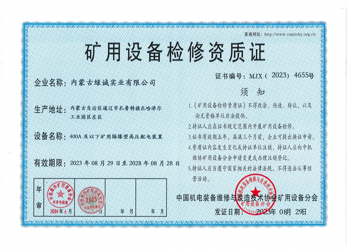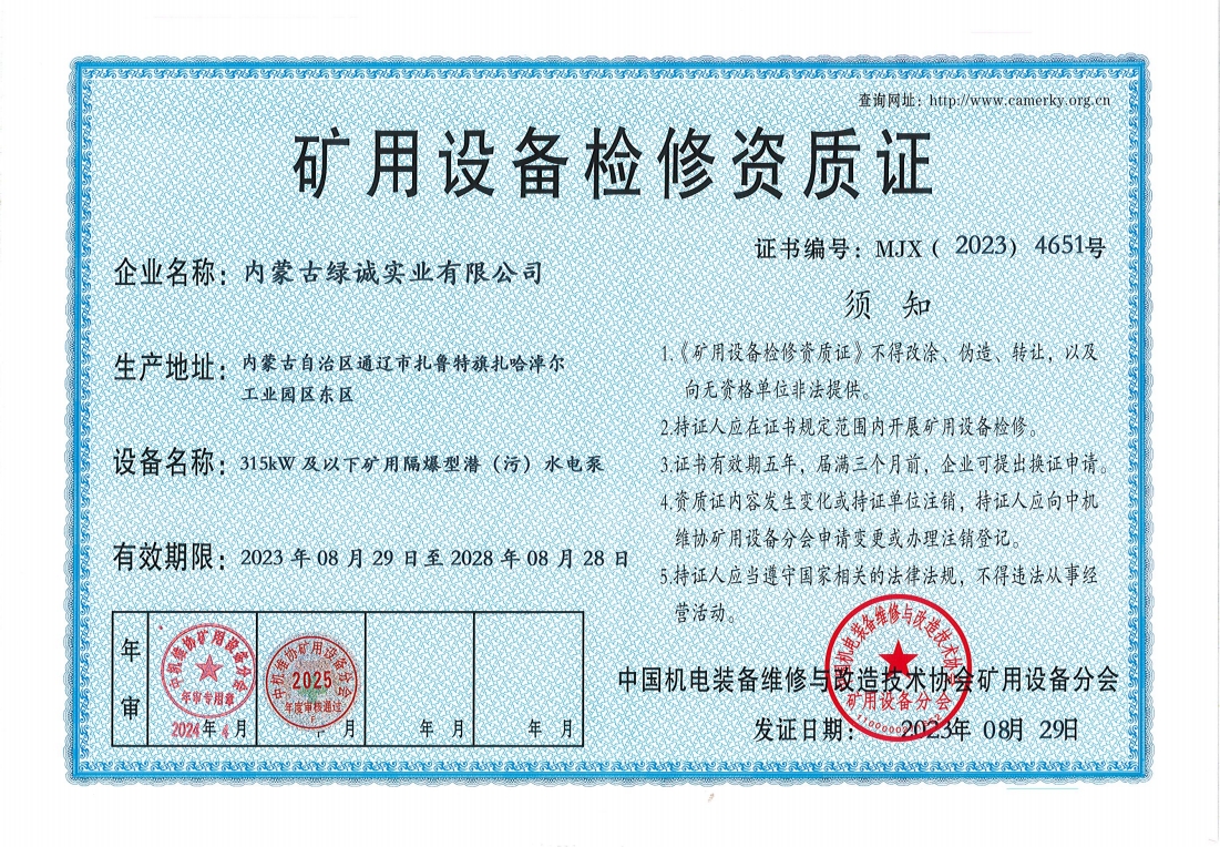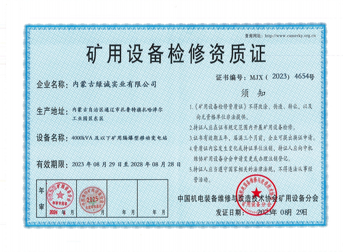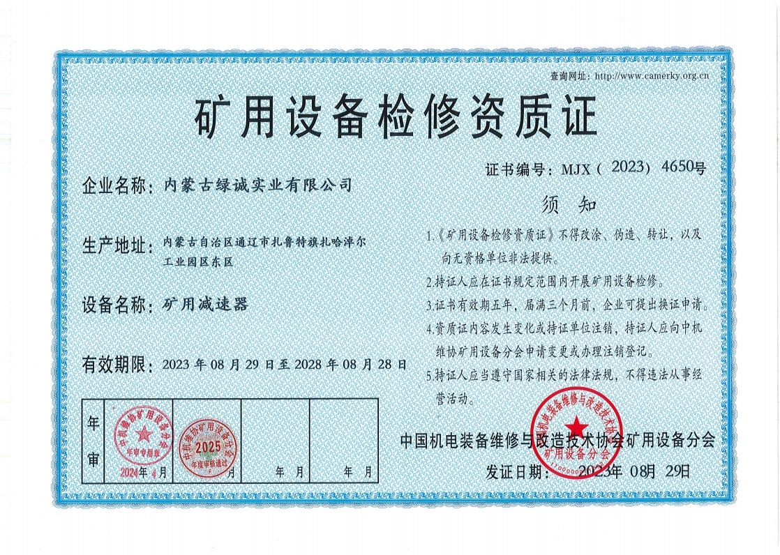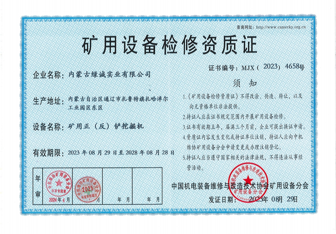 2018年我公司通過中國機(jī)電裝備維修與改造技術(shù)協(xié)會礦用設(shè)備分會審核并取得了9項礦用設(shè)備檢修資質(zhì)證書。公司本著“誠信為本 質(zhì)量為先 全心全意為客戶 ”的服務(wù)理念,圓滿完成各個廠礦的機(jī)械維修及配套服務(wù),期待與您共同合作。